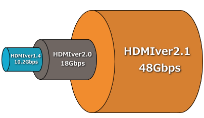 HDMIver2.1は高速リフレッシュレートを実現するために、最大転送速度は48Gbpsと高速になっています。